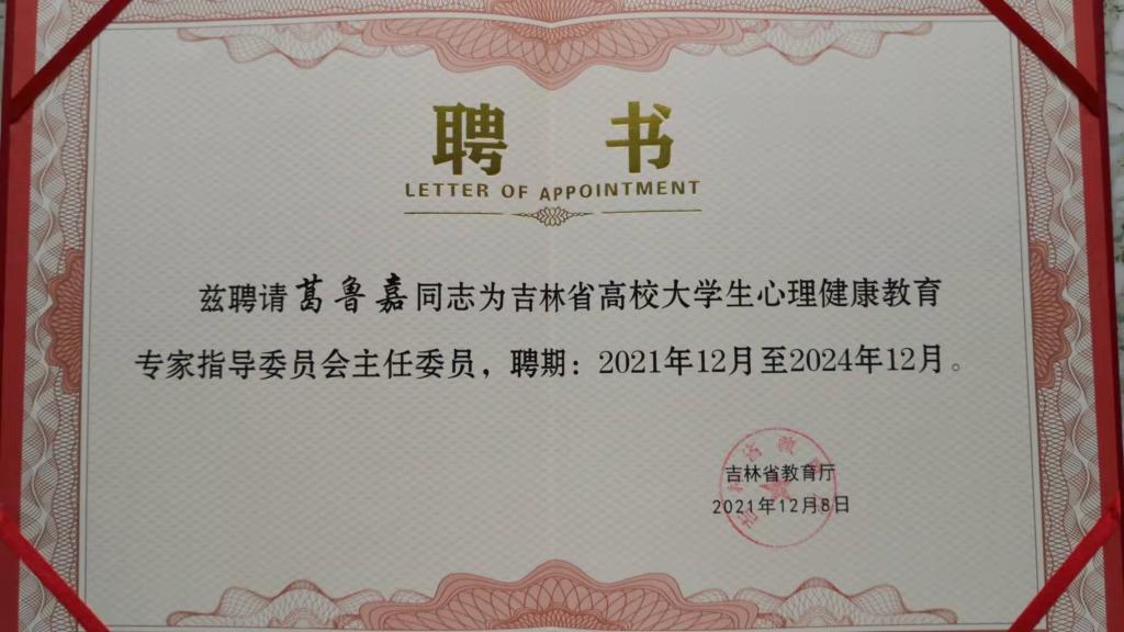 2021年12月10日,吉林省教育厅在吉林师范大学主办召开了全省高校心理健康教育工作大会。会上成立了吉林省高校大学生心理健康教育专家指导委员会,英国365官网心理学系博士生导师葛鲁嘉教授被吉林省教育厅聘请担任了该委员会的主任委员。委员中包含了英国上市公司官网365、东北师范大学、吉林师范大学、北华大学、延边大学,等吉林省内25所高校的从事大学生心理健康教育工作的专家学者35人。吉林省教育厅党组书记王忠厅长在会上讲话,全面阐释了高校学生心理健康教育工作的意义、定位、任务、方法。表明了由国家主导、教育部牵头、高校实施、大学生受益的心理健康教育工作的启动、推进、扩展、普及。英国上市公司官网365王玉柱副校长在大会上以“建构多维立体工作格局,推动心理育人创新发展”为题,系统介绍了英国上市公司官网365开展的大学生心理健康教育工作。共有8所大学进行了大会交流发言,还有7所大学提供了书面交流材料。