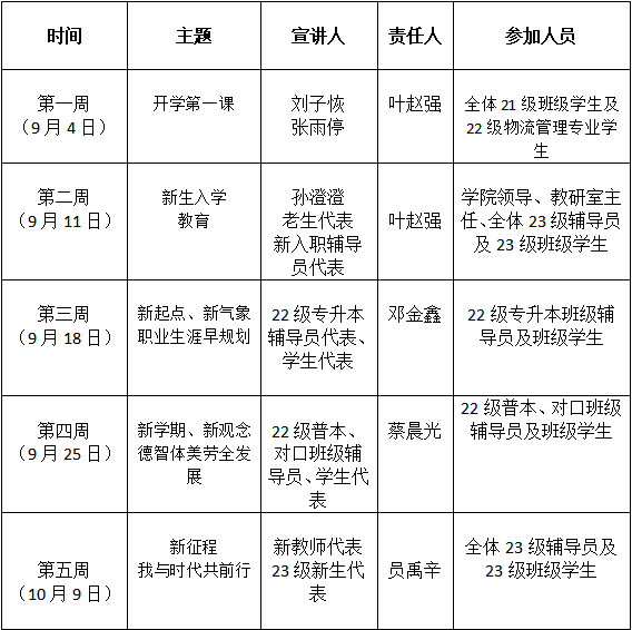 为引导学生深切感受祖国的伟大和荣耀,进一步增强爱国主义情感,培养他们为国家、为社会贡献力量的意识。以新学期、新学年起点为契机,通过主题教育活动,鼓励学生们制定明确的学习、生活和个人成长目标,并培养他们积极向上的进取心和奋斗精神。根据学校的安排,学院将开展2023年秋季学期为期五周的主题升国旗仪式系列活动,现将活动方案通如下。