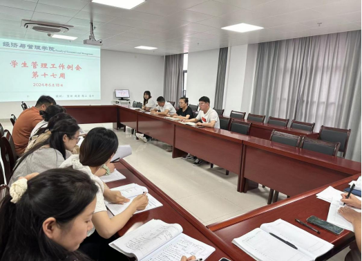 2024年6月18日,best365手机版官网在行政楼725会议室召开本学期第十七周学生管理工作例会,副院长秦品德、书记助理叶赵强以及全体辅导员参加会议,会议由院长吴玲主持。