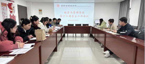 2024年12月24日,best365手机版官网在行政楼725会议室召开了本学期第十七周学生管理工作例会。学院书记助理叶赵强、团总支书记员禹辛及全体辅导员参会,会议由院长吴玲主持。