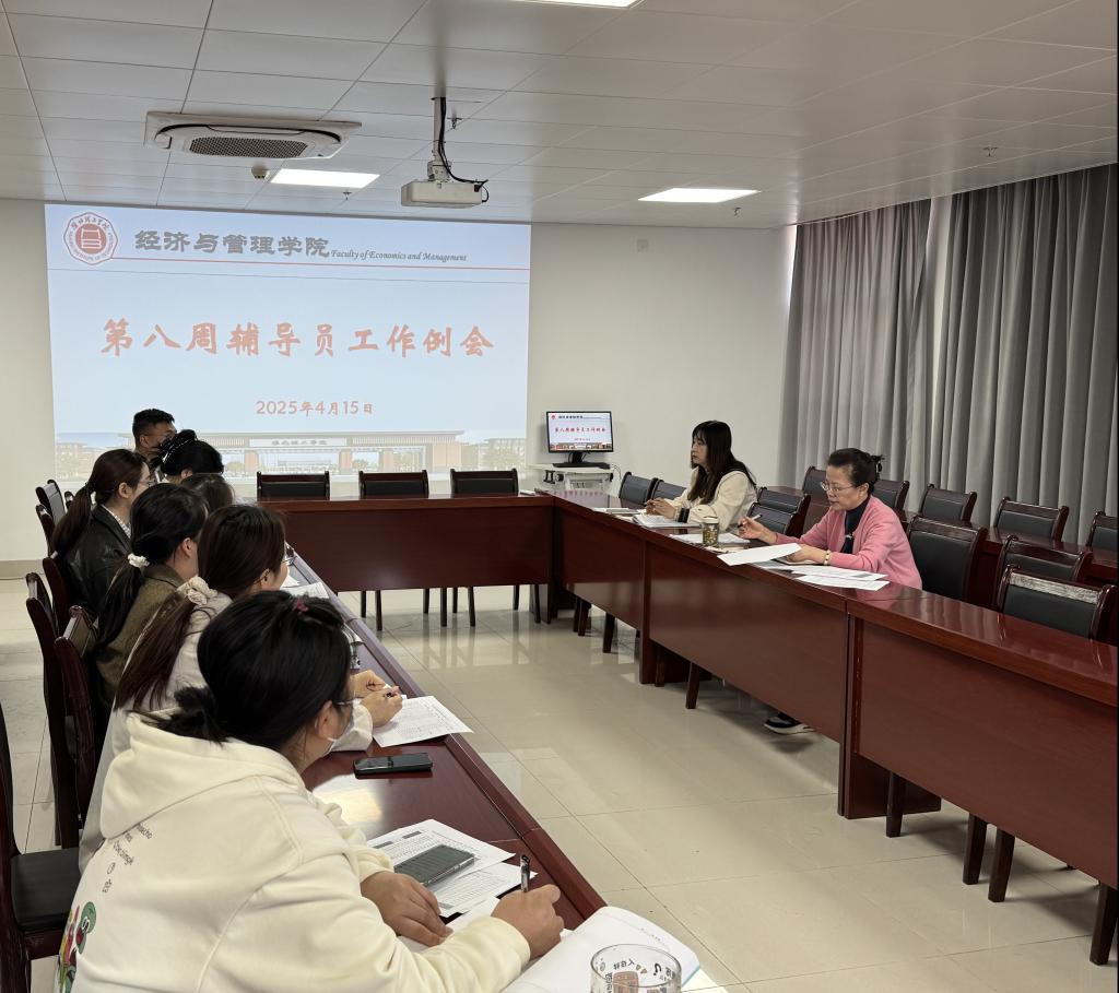 2025年4月15日,best365手机版官网在行政楼725会议室召开本学期第八周学生管理工作例会暨形体礼仪专题动员会议,学院书记助理员禹辛及全体辅导员参会,会议由院长吴玲主持。