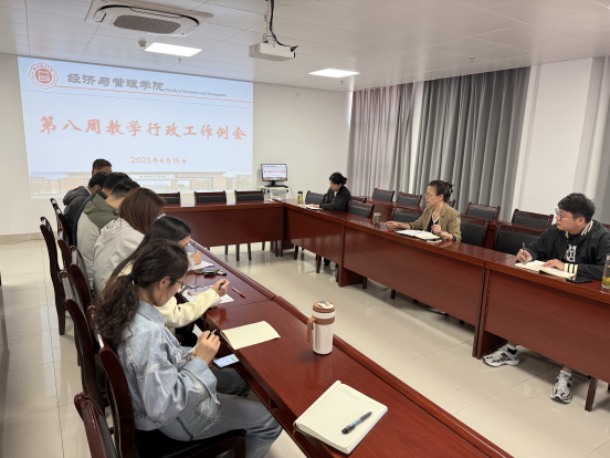 2025年4月16日,best365手机版官网在行政楼725召开第八周行政工作例会,院长助理张珊、叶赵强,教学秘书李健及各教研室主任出席会议,会议由院长吴玲主持。