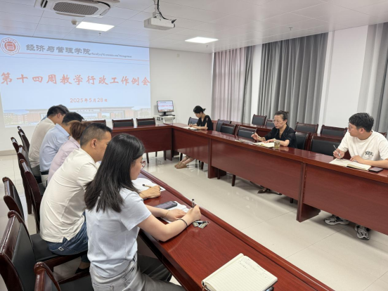 5月28日上午,best365手机版官网在行政楼725室召开第十三周行政例会,院长吴玲主持,院长助理张珊、叶赵强,教学秘书李健及各教研室主任参会。