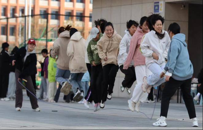 一声令下,第一个项目“跳大绳”正式开始。计时开始,同学们的的绳子飞快地甩了起来,犹如条条彩龙在飞舞。跳绳落地,尘地飞扬,耳边只剩下绳子接连不断的甩动声。在此过程中不仅锻炼了同学们的体能耐力,更彰显了同学们的团结协作精神。