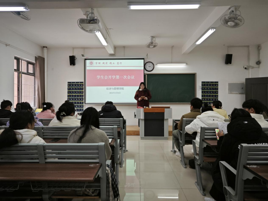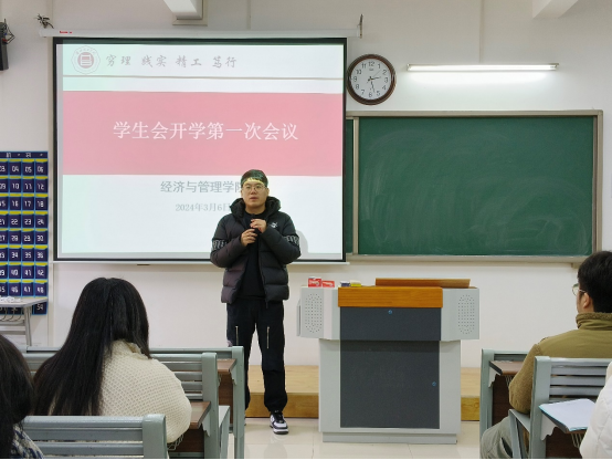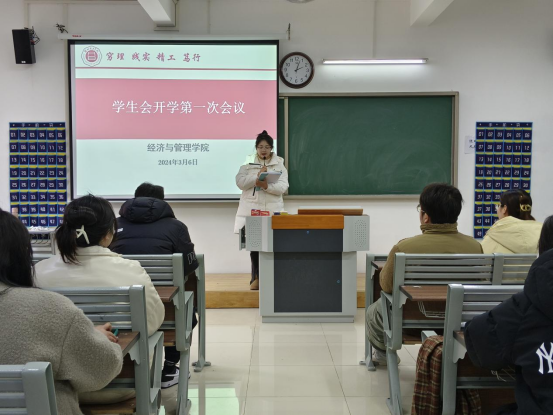 会议伊始,学生会主席团成员、各部门部长依次上台发言,对2023年秋期学生会工作进行了回顾和盘点,同时就自己分管工作和各部门的工作存在不足、新学期计划安排进行了相关汇报与交流。