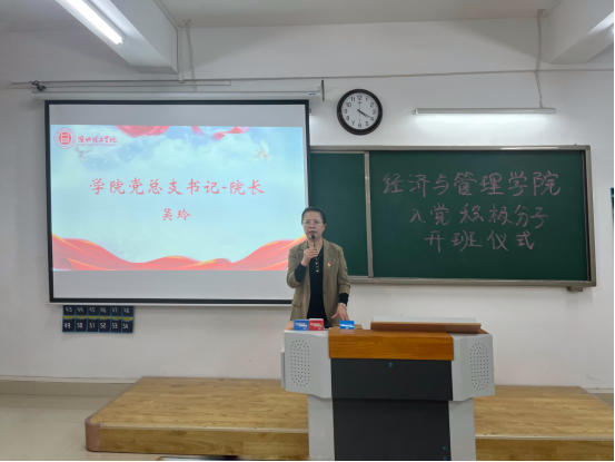 学院党总支书记、院长吴玲在讲话中向参加本期培训的全体学员表示热烈的欢迎和诚挚的祝贺。她强调,此次培训不仅是一次难得的学习机会,而且也是政治生活中的一件大事,更是在人生道路上迈出的重要一步,大家要学会珍惜,能够学有所思,学有所得。同时,吴玲书记对全体学员提出如下要求和希望:一是要求学员们能够严格学习纪律,在培训班期间严格按照规章要求参加培训和学习;二是严格按照学习方案认真学习,将学习成效内化于心,外化于行;三是各学员要认真进行志愿者实践活动,进行自我管理和提升,成为学生中的标杆、榜样,做生活的管理者、执行者和策划者,为同学做好服务;四是要求学员们在学习期间认真研学和思考,积极参加讨论和撰写学习心得。最后吴玲书记希望大家圆满完成教学任务,顺利结业,在今后的生活中认真思考学习,充实人生,为党和国家做出自己的贡献,不忘初心,砥砺前行,争取早日加入中国共产党。