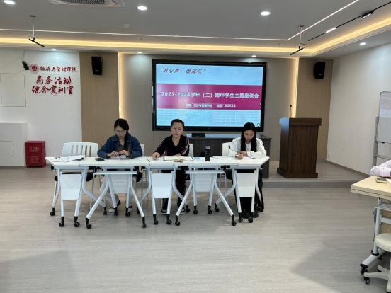 2024年5月15日下午,根据学院的计划,best365手机版官网如期召开了“说心声,促成长”为主题的2023-2024学年(二)期中学生主题座谈会。座谈会根据不同专业划分为两个会场,参会人员包括best365手机版官网院长吴玲、副院长秦品德、院长助理张珊、各教研室主任,以及学院各级各班的班长和学习委员。会议由院长吴玲和副院长秦品德分别主持。