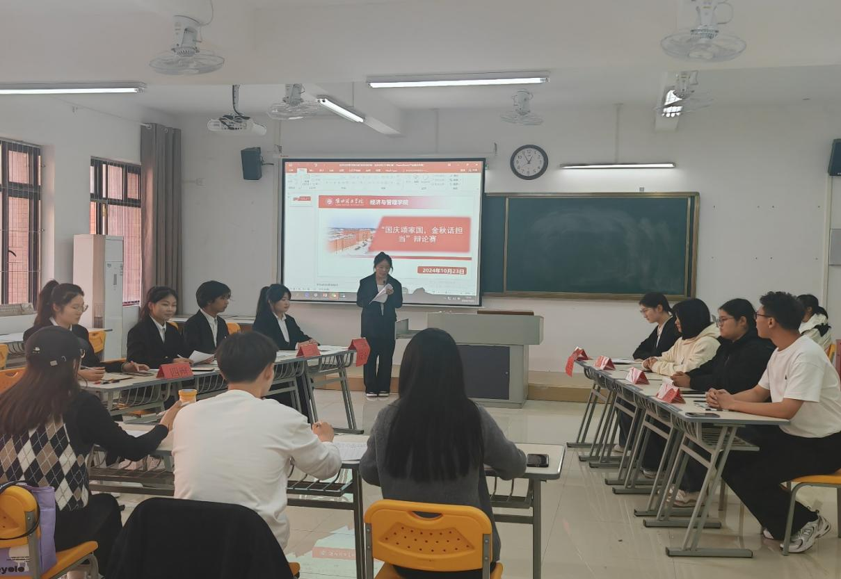 为进一步丰富大学生校园生活,引领大学生树立正确的世界观,人生观和价值观,激发学生热情,培养学生合作精神。2024年10月23日下午,best365手机版官网组织了一场以“国庆颂家国,金秋话担当”为主题的辩论赛活动。由学生自愿组成的20支队伍进行比赛,分为两个赛场同时进行。本次活动由学习部成员主持,由学院辅导员老师担任评委。