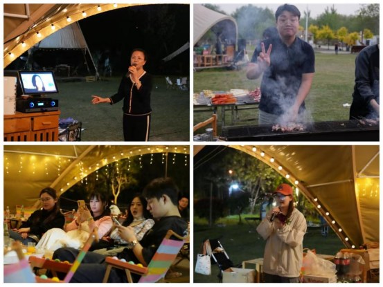 夕阳西下,活动转入美食环节。景区在草坪搭建了自助烧烤区,提供新鲜食材与环保烤具。教职工享受美味的烧烤和地锅鸡,香气四溢中夹杂着欢声笑语,期间还有老师精彩献唱,点燃了全场。