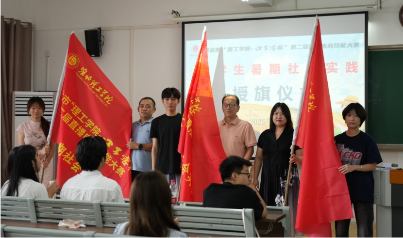 授旗仪式上,口子窖的相关领导及学院领导为各实践团队授旗,象征着责任与使命的传递,标志着大赛的暑期预热实践正式拉开帷幕。