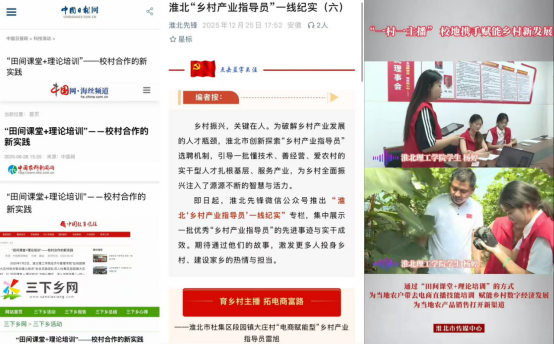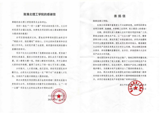 目前,团队还积极对接大庄村林下经济赤松茸种植企业,策划农产组合宣传,推动项目从“流量宣传”向“产业落地”转化,助力当地农产品销量增长。这份实干与成效,让团队收获大庄村村民委员会、杜集区段园镇人民政府的感谢信与表扬信,助农故事被中国日报、中国网、新农村、中国农科新闻网、中国教育晚报、三下乡、淮北市传媒中心、淮北先锋等多家媒体报道,校地合作助农的示范效应持续扩大。
