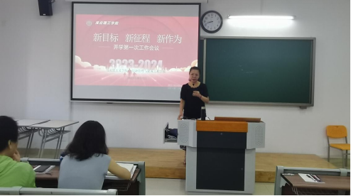 为确保新学期各项教学安排有效落实,扎实推进下半年教学重点工作,9月1日上午08:30,经济管理与建筑工程学院和马克思主义学院全体教师在1教212召开了2023-2024学年第1学期教学工作会议,会议主题为“新目标、新征程、新作为”,吴玲院长主持本次会议。