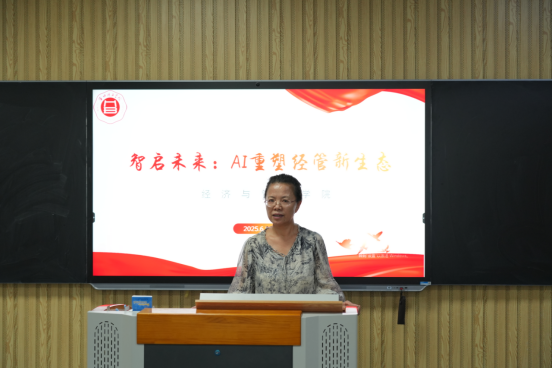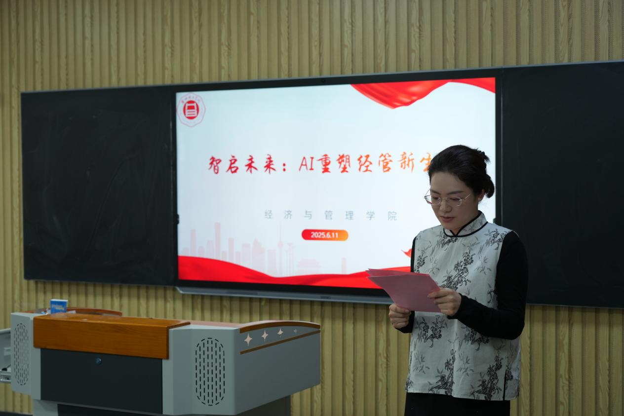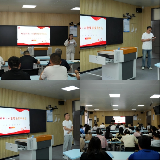 2024年底AI浪潮席卷全球,教育领域迎来数字化变革,从知识传递到课堂生态,从教学工具到教学逻辑都要重塑。2025年6月11日,学校在一教210举办“AI赋能教学”大赛,11位经管教师登台展示,探索AI技术与教学融合,重塑经管教学新业态。副校长汪建利、教务处副处长秦品德、发展规划处处长朱学道、经管学院全体教师参加活动。
