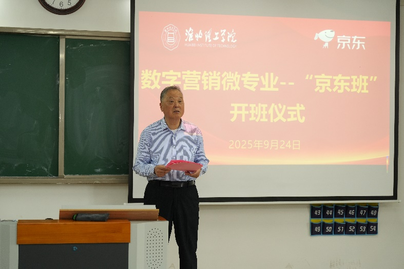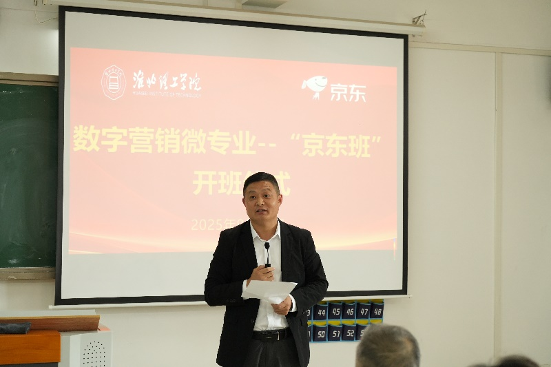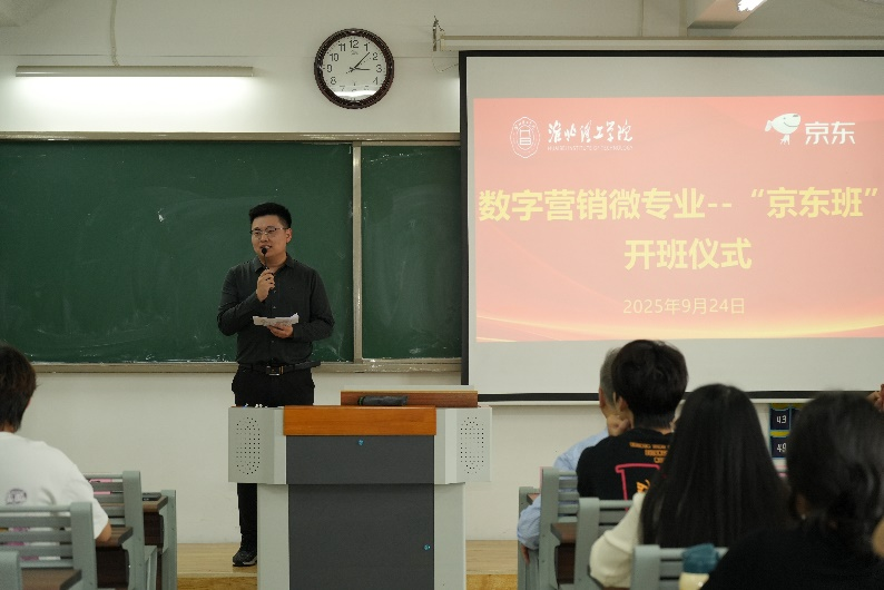 2025年9月24日,淮北理工学院首届数字营销微专业“京东班”开班仪式在二教323隆重举办。京东集团产业合作部大区负责人杨阳、淮北理工学院副校长汪建利、校教务处副处长秦品德,首届“京东班”的全体同学、best365手机版官网的领导、“京东班”的班主任和任课教师参加了开班仪式,best365手机版官网院长吴玲主持活动。