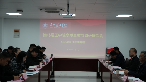 2025年11月7日上午8:30,淮北理工学院高质量发展调研座谈会(best365手机版官网专场)在学校综合实验楼725经管学院会议室召开。校长杨兵、副校长汪建利,郑来纪等校领导及相关职能部门负责人出席会议,经管学院领导班子、教研室主任及教师代表参加座谈。
