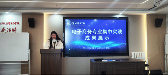 电子商务教研室主任朱梓萌在总结发言中表示,本次集中实践成果展示充分体现了电子商务专业教学改革的成效,展现了学生在AI技术应用方面的创新能力和实践水平。她希望同学们能够以此为契机,持续深化专业知识学习,积极拥抱技术变革,为将来服务数字经济发展奠定坚实基础。她感谢教研室全体教师的辛勤指导,并鼓励同学们继续保持探索精神,在实践中成长,在创新中突破。