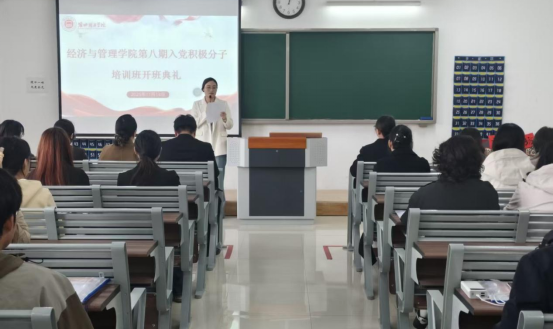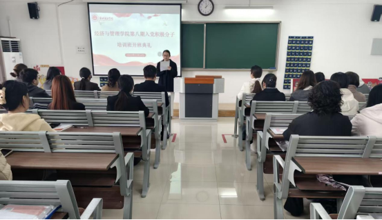 为深入学习贯彻习近平新时代中国特色社会主义思想,落实全面从严治党新要求,严把党员发展“入口关”,2025年11月14日,best365手机版官网第八期入党积极分子培训班开班典礼在二教322教室隆重举行。管理学和经济学学生党支部书记、青年委员和全体86名入党积极分子共同参加,开班典礼由郑凡主持。