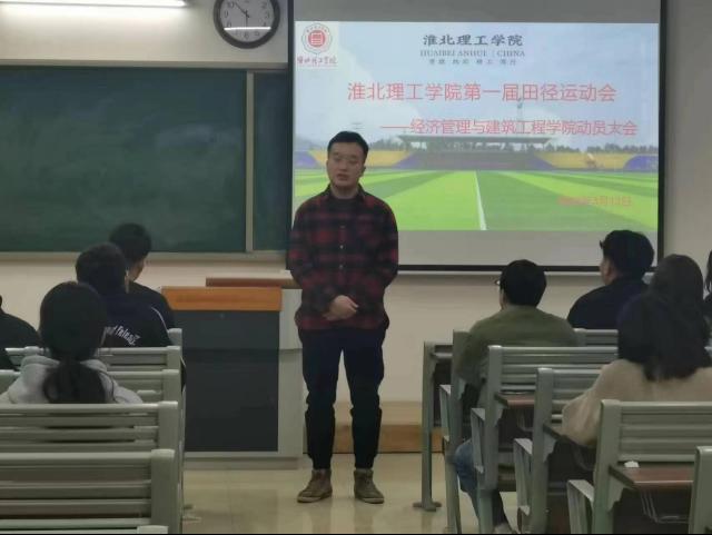 为顺利开展第一届田径运动会工作,更好的动员经济管理与建筑工程学院学生积极参与本届运动会选拔,提高学生整体身体素质和学院学生内部凝聚力。3月13日晚,在一教215教室召开经济管理与建筑工程学院体育委员工作会议。团总支书记叶赵强、负责文体活动的辅导员王绎程老师、学生会主席团、文体部全体成员、各班体育委员参加此次会议,会议由文体部负责人周宗耀主持。