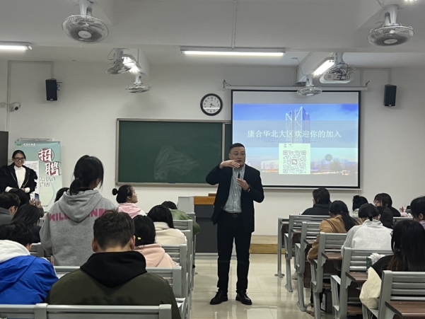 第二场招聘由盛世康禾生物技术有限公司于15:00-16:00进行宣讲。盛世康禾健康产业集团在全国重点城市发展迅速,拥有深厚的市场基础,备受行业瞩目。本次招聘,盛世康禾生物技术有限公司为满足不同人才需要,提供了多种岗位,并且详细介绍了公司的晋升机制、岗位需求以及福利政策。通过本次宣讲,同学们也从公司介绍、校招详情、现场问答等环节充分了解企业,15名同学主动投递简历,参加面试。