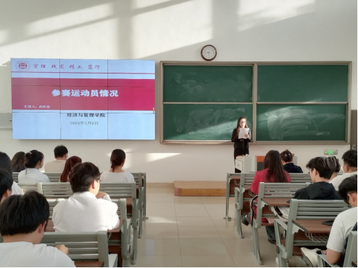 首先,王绎程老师对参加校运动会的运动员表示了诚挚的祝贺,并肯定了学生会在选拔赛中的工作。他介绍了本次运动会的带队训练情况以及各专业活动负责人和指导老师,承诺将全力保障后勤工作,确保运动员顺利比赛