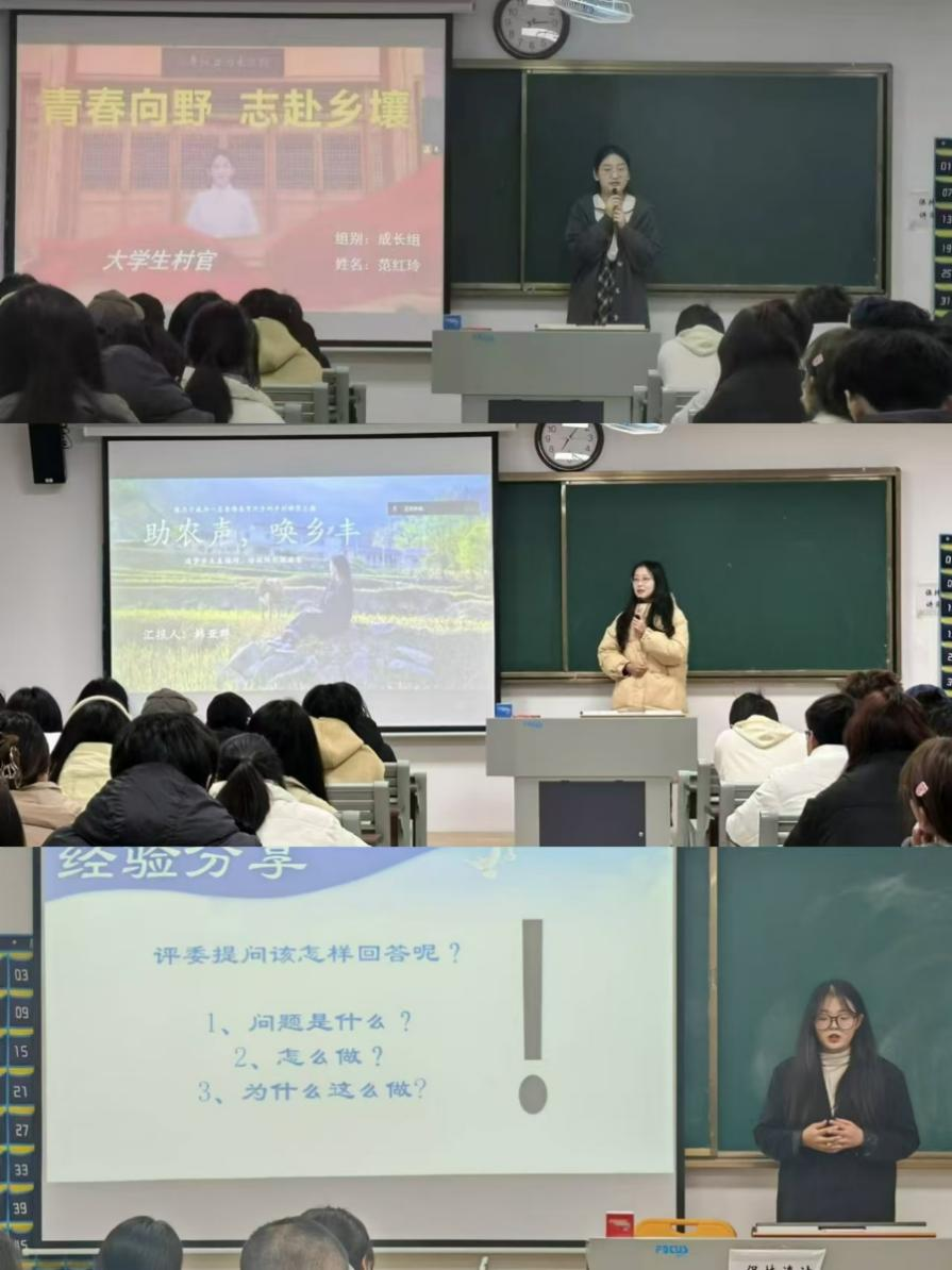 由范红玲、韩亚群和袁怡玟作为成长赛道的获奖选手为同学们分享经验。第十八届大学生职业生涯规划大赛校级比赛成长赛道一等奖范红玲同学在分享会中提到,自己的职业生涯规划要符合时代价值,树立正确向上的职业追求,并且要充分考虑自己的专业、能力、兴趣等种种要素。要勇于尝试,敢于挑战!