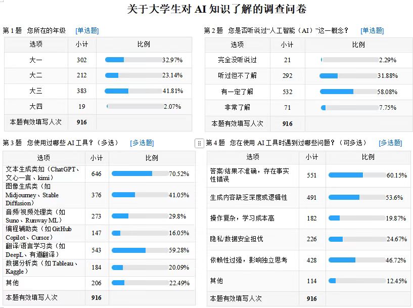 全体辅导员一进第二课堂摸底调研·知现状。通过覆盖全院的问卷调查,了解学生对AI认知现状及需求,调研结果显示,大部分学生对AI技术表现出浓厚兴趣,但在系统性知识和实践应用方面存在明显短板,这为辅导员二进第二课堂精准指导提供了明确方向。