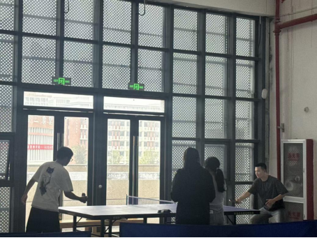 同期进行的乒乓球赛同样竞争激烈。赛场上,乒乓球在球台间快速穿梭,参赛选手沉着冷静、动作敏捷,精准的发球、灵活的走位与果断的回球,展现了出色的竞技状态与强大的心理素质。经过4 个小时的连续比拼,12 名队员凭借过硬实力突出重围,成为本次乒乓球赛的佼佼者!