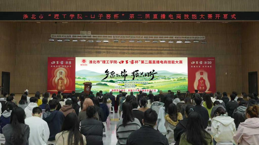 2025年10月26日14时,备受关注的淮北市“理工学院-口子窖杯”第二届直播电商技能大赛决赛在淮北理工学院正式拉开帷幕。本次大赛由淮北市人力资源和社会保障局、淮北市总工会主办,淮北理工学院承办,安徽口子酒业股份有限公司独家冠名赞助。淮北理工学院校长杨兵,党委书记、督导专员朱德顺,党委副书记、纪委书记、副校长汪建利、副校长郑来纪以及淮北市人力资源和社会保障局副局长张华、杜集区政府副区长郭守厚,安徽口子酒营销有限公司淮北分公司经理杨新德,淮北顺达商贸有限公司常务副总经理张盛等相关领导参加活动、观摩比赛。大赛邀请了行业、企业和学校的专家组成评审团和监赛团,为比赛注入了权威性与专业性。