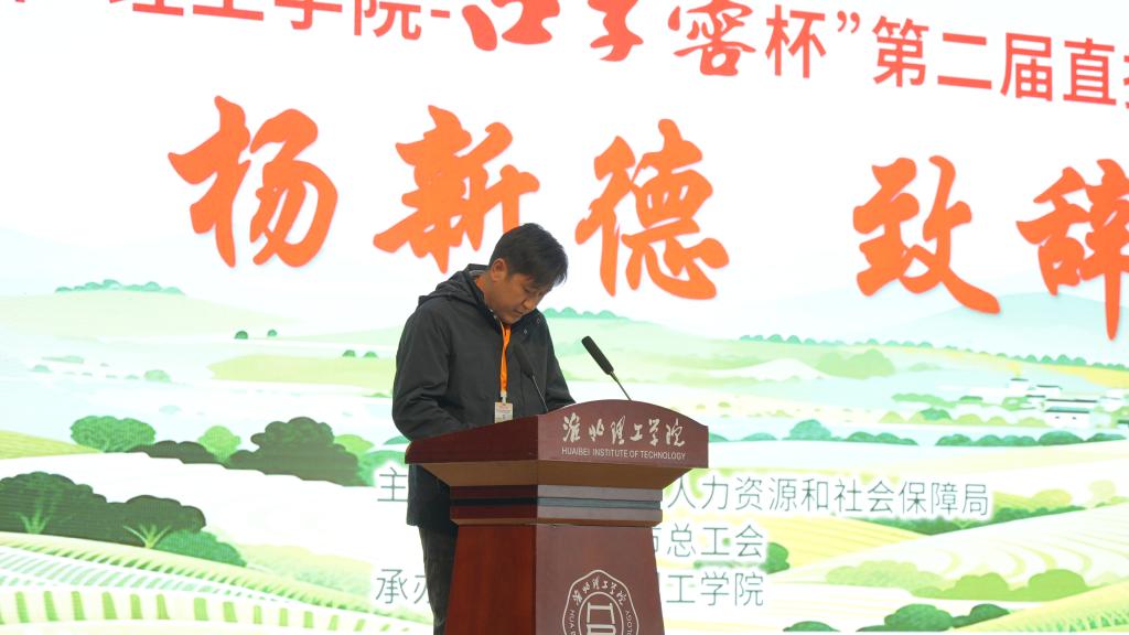 在决赛开幕式致辞中,朱德顺书记代表学校向各级领导、企业及专家的支持表示衷心感谢,充分肯定了大赛在以赛促学、以赛促创、政校企协同育人方面的积极意义。他勉励参赛选手把握机遇、全力以赴,在实践中锤炼专业素养,激发创新能力,展现青春风采,勇担时代使命,为淮北直播电商产业注入新活力,助力地方经济高质量发展。