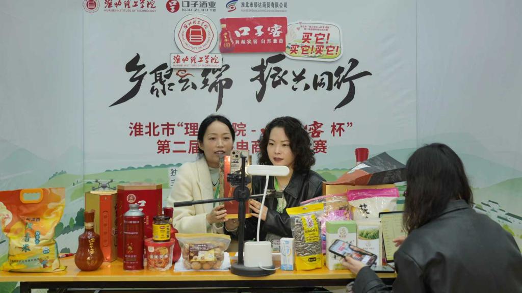 本次大赛以“乡聚云端·振兴同行”为主题,贯穿理论考试、企业实践与预播、初赛与决赛等各个环节,积极践行“以赛促学、以赛促教、以赛促产”的育人理念,有力推动产教融合、服务地方发展。作为一场历时四个月、深度赋能地方发展的电商盛宴,吸引了杜集区基层乡村的报名参赛,村干部带头组建参赛队伍勇闯决赛。本次大赛近六成选品源自淮北本土,通过直播大赛开辟新销路、提升知名度,充分展现了本次大赛赋能乡村振兴的理念。