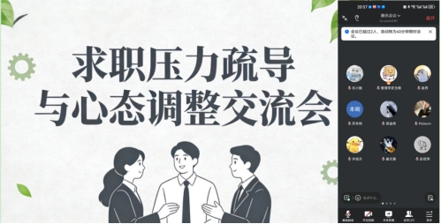 针对共性困扰,辅导员与求职经验丰富的同学共同分享实用技巧:简历投递等待期可通过制定每日小目标转移注意力;面试失败后以“复盘经验而非否定自我” 重构认知;借助呼吸放松、情绪日记等方式调节情绪波动。这些可操作、易坚持的方法,让同学们应对求职压力时更有方向。