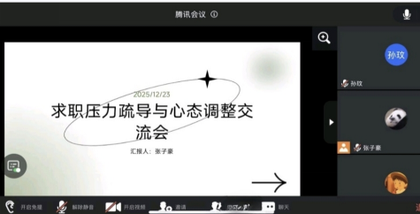 为缓解2026届毕业生求职焦虑,精准对接就业心理需求,助力建立积极求职心态,best365手机版官网于2025年12月19日至25日,以 “职启护航” 为主题,开展求职压力疏导与心态调整线上班会活动。活动以班级为单位,搭建起毕业生同辈交流、压力释放、经验共享的优质平台。