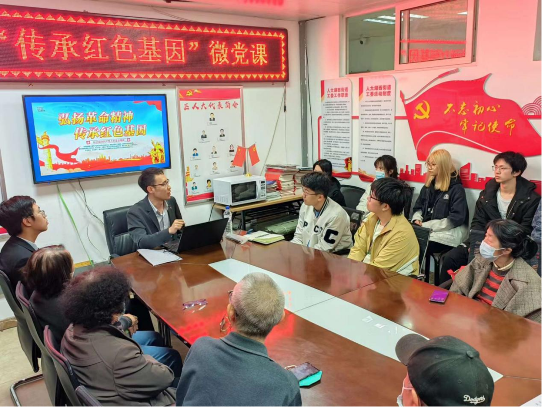 为深入学习贯彻党的二十大精神,充分发挥革命精神的塑造提升作用、先烈事迹的先锋模范作用,引导英国365官网广大青年学子传承五四精神、赓续红色血脉,英国365官网团委组织学生党员、共青团员们走进集安社区,共同组织开展了“弘扬革命精神,传承红色基因”主题党课团课学习活动。
