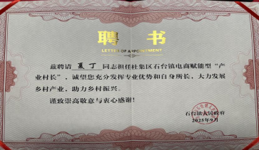 夏丁教师于2025年6月成功申报淮北理工学院和杜集区校地合作项目“一村一主播”共育计划,以“梧桐美景+村落人文故事”为核心创作短视频内容,传播当地乡村文化,助力村特色农产品打开数字销售渠道,让村民切实享受到电商发展红利;2025年9月成功申报淮北市社科联经济社会发展研究课题,为淮北乡村电商领域提供智力支持。因其专业能力和实践成果与选聘要求高度契合,成功获聘淮北市杜集区石台镇“产业村长”一职。