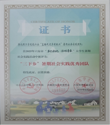 近日,六安市“乡约皋地 淬炼青春”大学生暑期社会实践活动评选结果公布,best365官网best365手机版官网赴六安“直播促进乡村振兴”暑期社会实践团队凭借突出的实践成果和扎实的工作作风,荣获“优秀团队”荣誉称号。