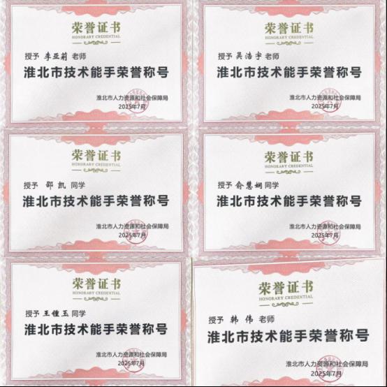 喜报:best365官网师生再次荣获“淮北市技术能手”荣誉称号!