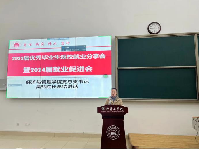 吴玲在总结讲话中对四位优秀毕业生返校分享就业经验表示欢迎和感谢,对他们在学的良好表现和高质量的就业分享表示赞许,并希望他们在各位的岗位上都能做出优异的成绩。吴玲对2024届毕业生进行了就业工作的再动员并提出要求:一是要树立正确的就业观,要有危机意识和不敢错过的紧迫感;二是要苦练学习和就业的能力和本领,要有能就业和高质量就业的“成绩单”和“敲门砖”;三是要树立脚踏实地、不断前行的毅力和决心,不求一步到位但求步步为赢。吴玲希望各位同学通过本次的就业分享,要明确并践行自己的职业发展和就业目标,并要勇于前行。