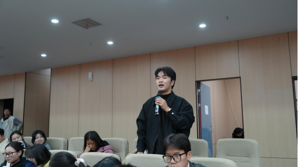 在互动环节中,毕业班学子就岗位发展、培养周期、职业晋升等问题进行了提问,董文斌耐心细致地逐一解答,结合具体案例为同学们分析了职业成长路径,鼓励大家珍惜机遇、脚踏实地,在实践中积累经验、实现自我提升。