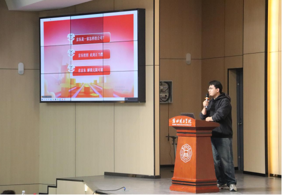 随后,杨阳结合自身经历分享了职业成长感悟。他表示,京东高度重视青年人才培养,注重在一线实践中锻造综合能力,为有志青年提供了广阔的成长舞台和完善的培养体系。杨阳鼓励同学们踏实奋斗,把京东作为职业选择,在电商行业实现更高发展。