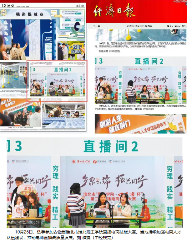 10月26日,淮北理工学院选手参加安徽省淮北市淮北理工学院直播电商技能大赛。当地持续加强电商人才队伍建设,推动电商直播高质量发展。对此,经济日报进行了报道:
